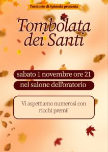 L’oratorio di Spineda organizza per sabato 1 novembre la tombolata dei santi.