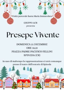 Domenica 21 dicembre 2025 Il gruppo ACR di Spineda presenterà il presepe vivente in Piazza Padre Pacifico Fellini.
