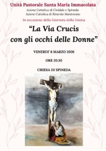 In occasione della giornata internazionale della donna, domenica 8 marzo l’Azione Cattolica di Cividale, Spineda e l’Azione Cattolica di Rivarolo Mantovano propongono per venerdì 6 marzo, presso la Chiesa di Spineda , ore 20.30 ” la Via Crucis con gli occhi delle donne”.